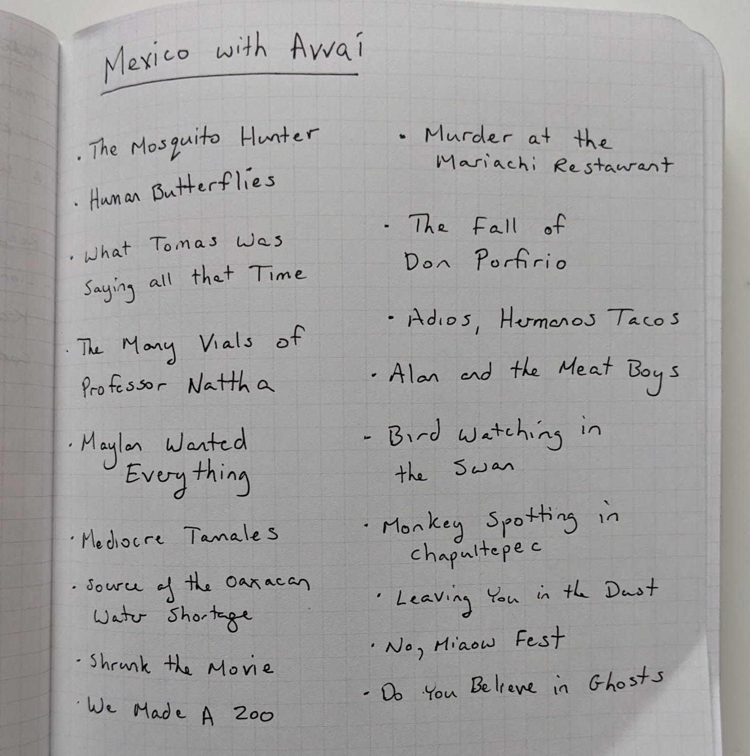 On our last night in the city, Avvai and I spent some time going over our experiences and making a list of titles for stories for our adventures and memories. As I’ve mentioned before, this is a strategy I have for remembering stories and making trips more memorable. I plan on writing these up (and I already have a few) but for now you can be intrigued by the tantalizing titles…